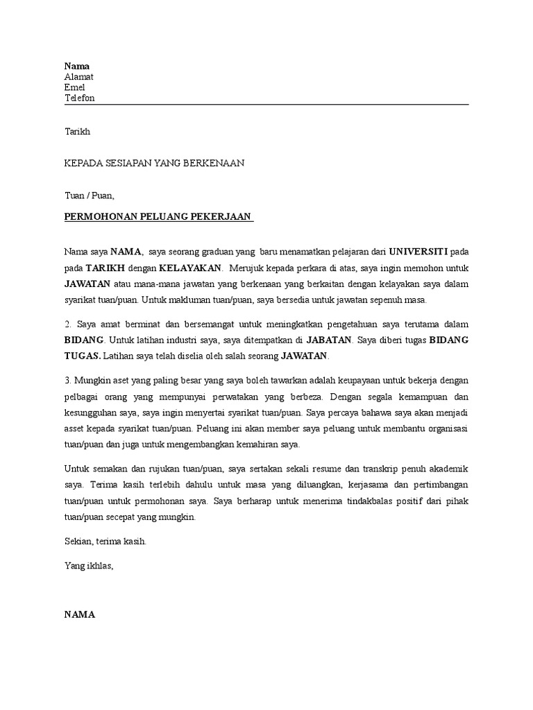 Contoh Cover Letter Bahasa Melayu Untuk Latihan Industri - 655. Mungkin ini semester terakhir anda. But you need to remember that the quality of work directly depends on the cost.